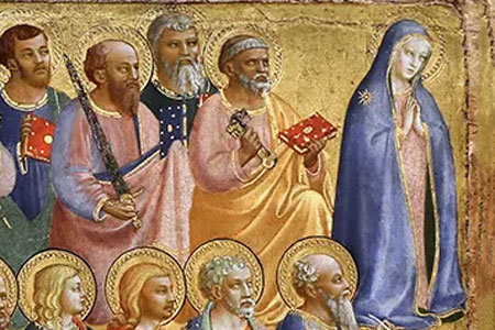 Du haut du Ciel, la Vierge Marie et les saints nous regardent et assistent aux événements de...
